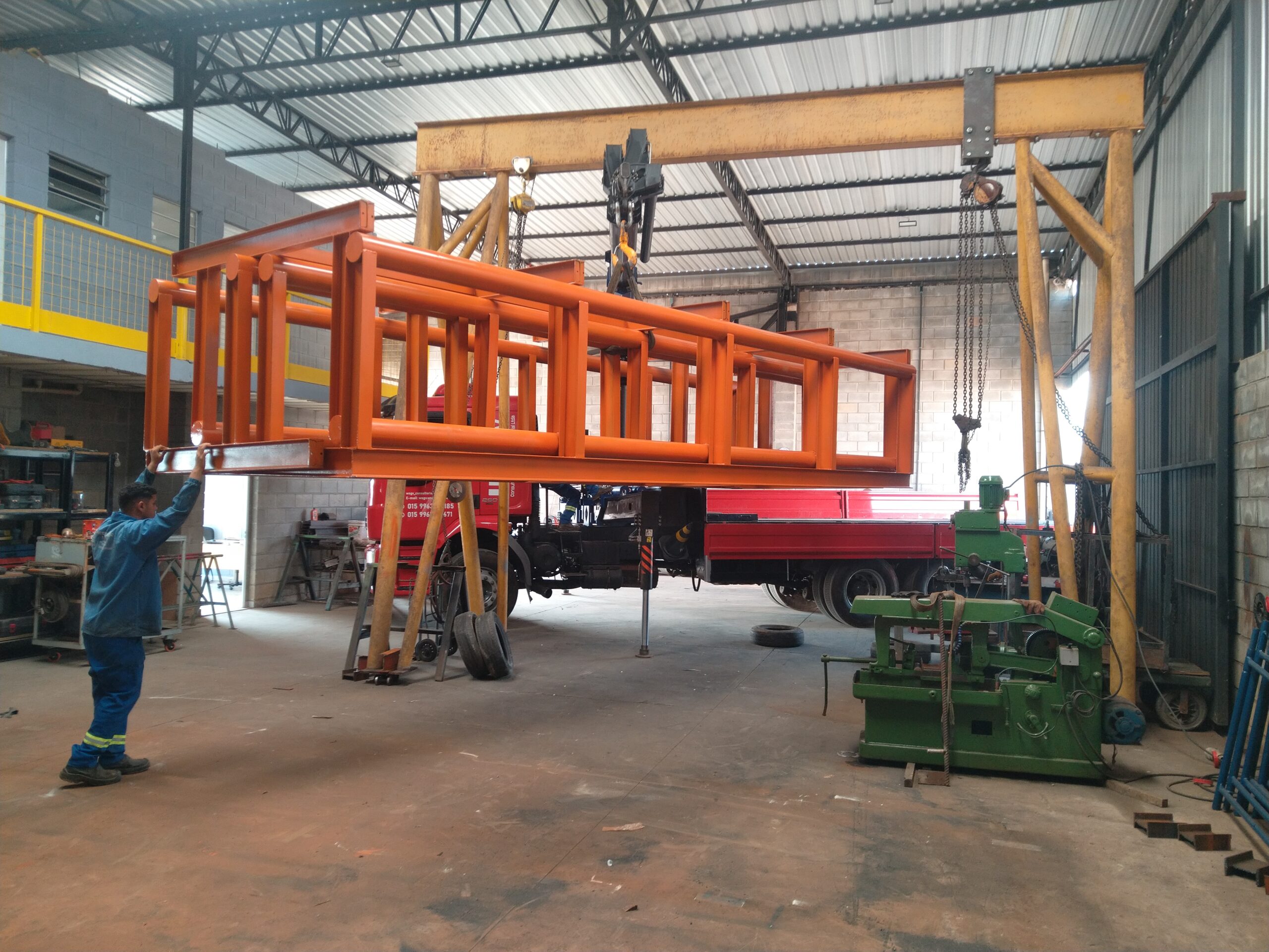 Montagens Industriais: Realizamos a montagem e instalação de equipamentos, linhas de produção, tubulações e das próprias estruturas metálicas que fabricamos, assegurando o alinhamento perfeito e o start-up da operação.